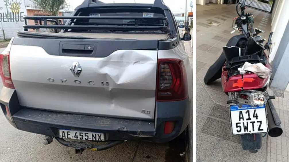 patente A14WTZ, guiada por Rodrigo Fernández Núñez, de 20 años, colisiona contra la parte trasera de un vehículo estacionado, marca Renault Oroch, dominio AE 455 NX, propiedad de Andrea