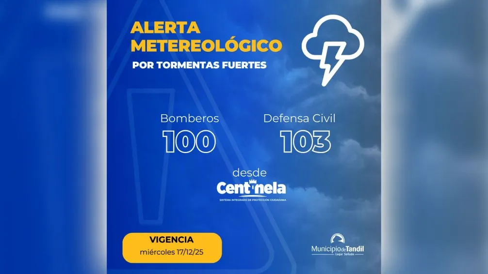 El Servicio Meteorológico emitió una alerta amarilla por tormentas fuertes que tendrá vigencia durante el miércoles 17 y jueves 18 de diciembre de 2025.