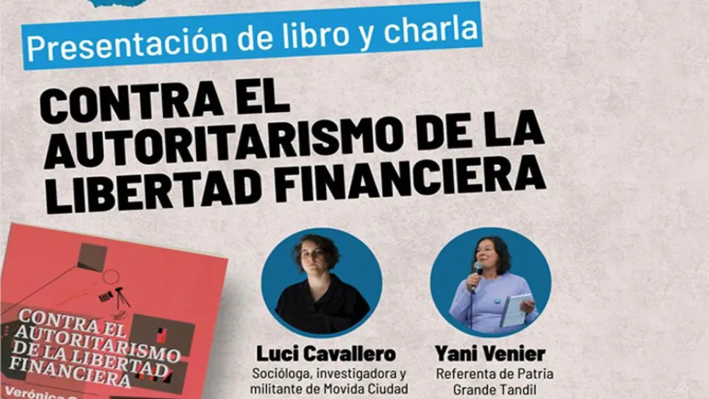 El próximo sábado 27 de septiembre a las 18:30 se realizará en Tandil la presentación del libro "Contra el autoritarismo de la libertad financiera" de Luci Cavallero y Verónica Gago. El encuentro tendrá lugar en el Centro Cultural Arte y Parte (Yrigoyen 882) con entrada libre y gratuita.