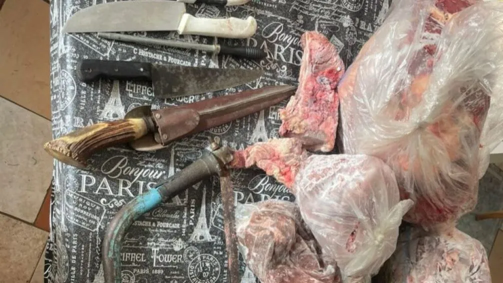 importante cantidad de carne faenada, armas de fuego, cuchillos, balanzas