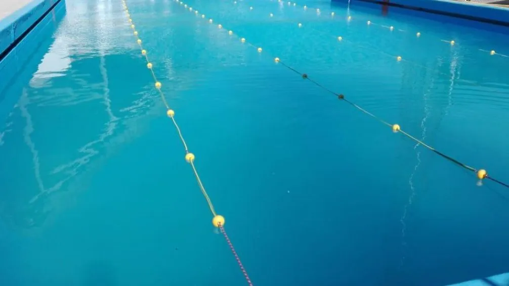 responsable realiza maniobras de reanimación en el borde de la pileta, las
