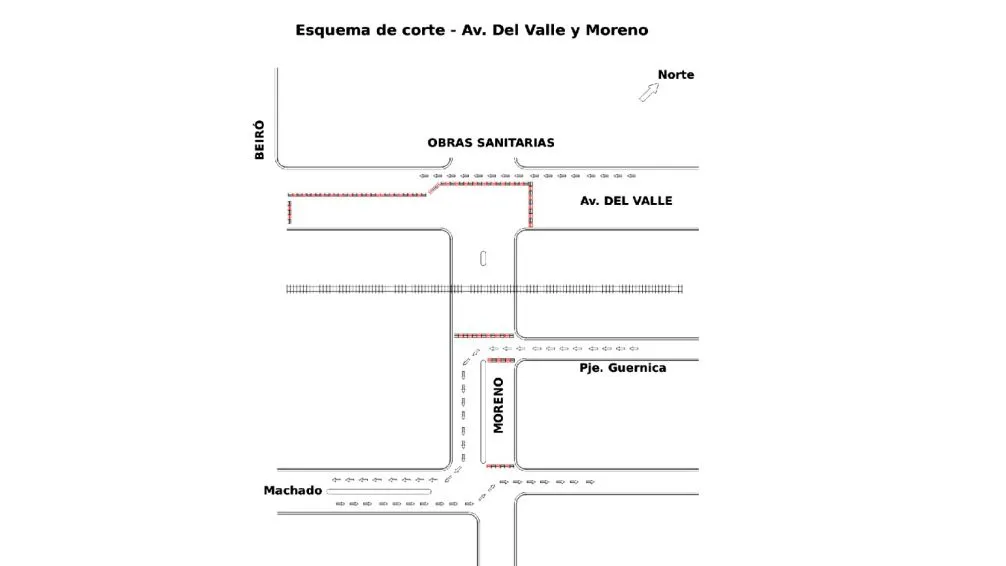 estará cortada totalmente, al igual que Moreno entre Del Valle y pasaje