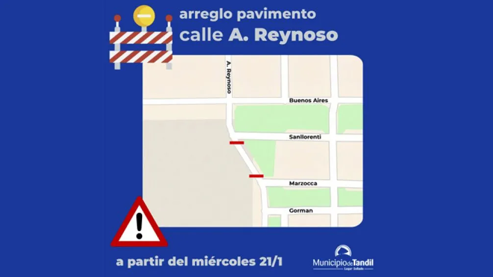 la calle Américo Reynoso, entre Sanllorenti y Marzocca, debido a trabajos de