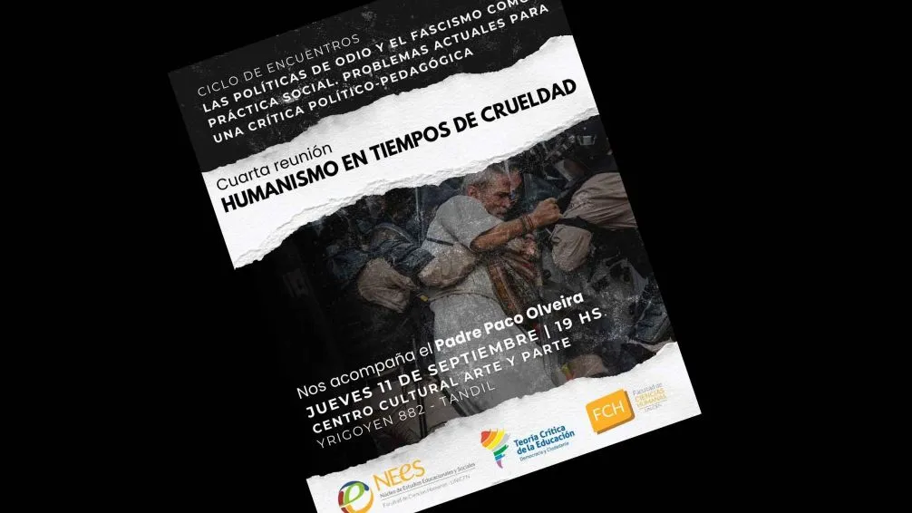 En el marco del ciclo de extensión "Las políticas de odio y el Fascismo como práctica social. Problemas actuales para una crítica político-pedagógica", el próximo jueves 11 visitará Tandil el Padre Paco Olveira, sacerdote integrante del Grupo de Curas en Opción por los Pobres.