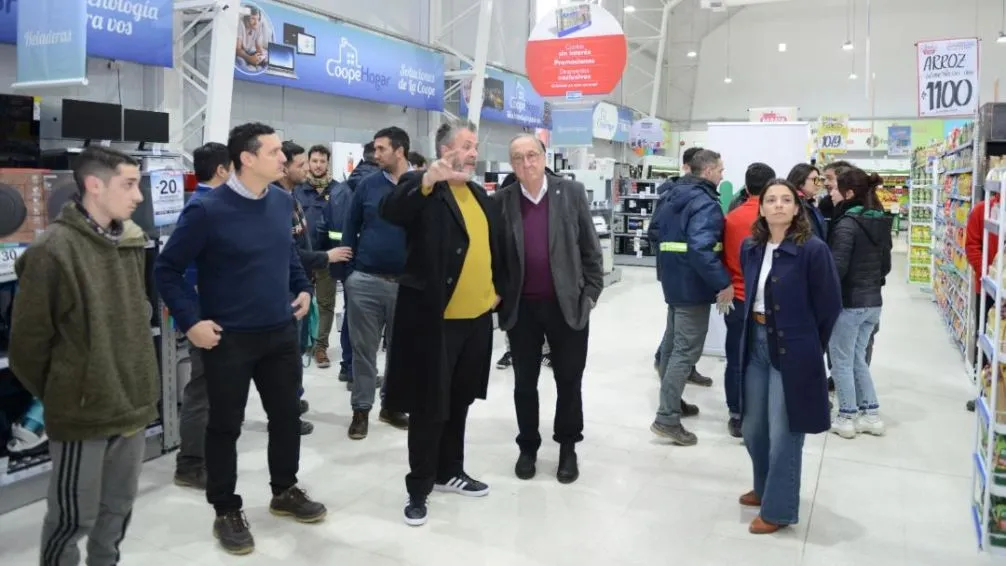 instalaciones del supermercado, la Cooperativa Obrera, acompañado por los