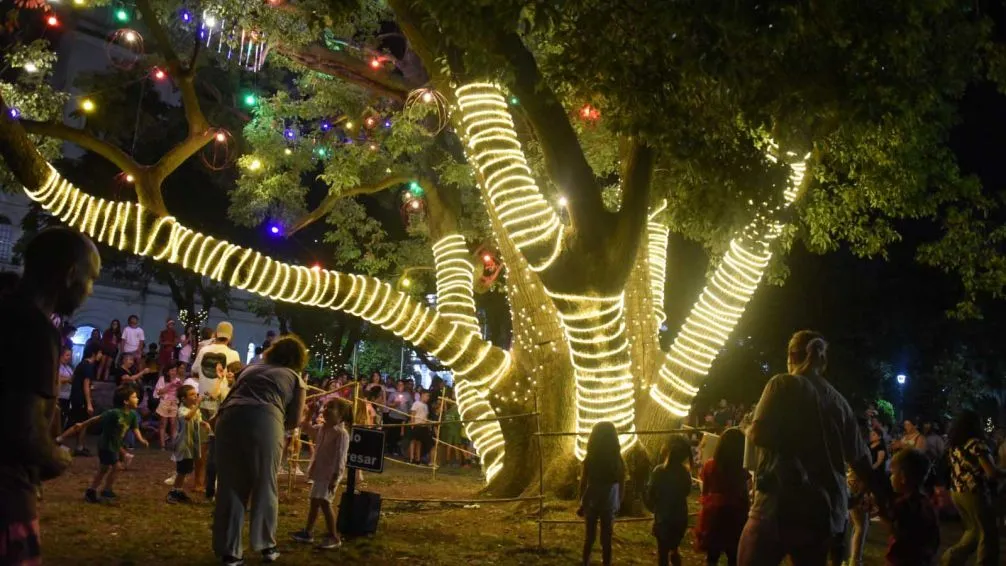 los árboles navideños se encendieron al mismo tiempo que en Tandil.